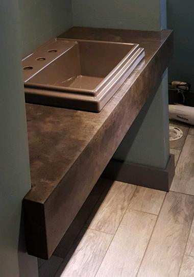 Commercial grade countertop mix is used to create a pre cast or cast in place concrete countertop.